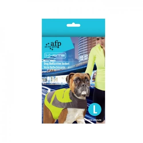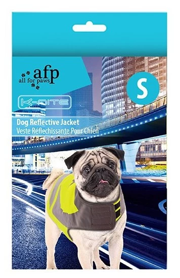 The fluorescent vests are part of the All for paws K-nite line for dogs which is a line specially designed for night walks with our pet. From toys to harnesses to the aforementioned reflective vests, everything you need to play with your pet at night with all the security we can offer and manufactured with high quality materials.