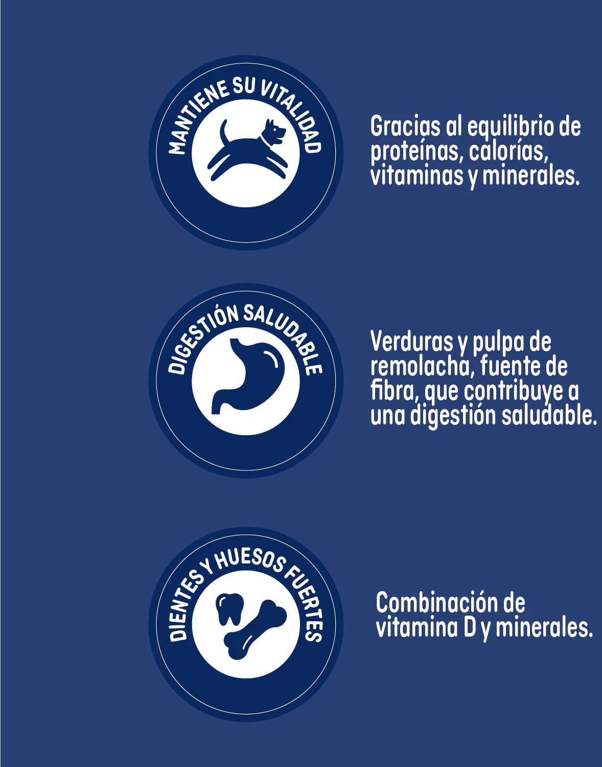 Healthy digestion: Vegetables and beet pulp, a source of fiber, which contributes to healthy digestion.