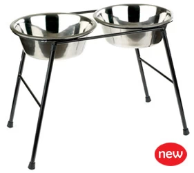 Classic For Pets Double Feeder And Drinker With Stand Black
