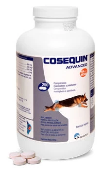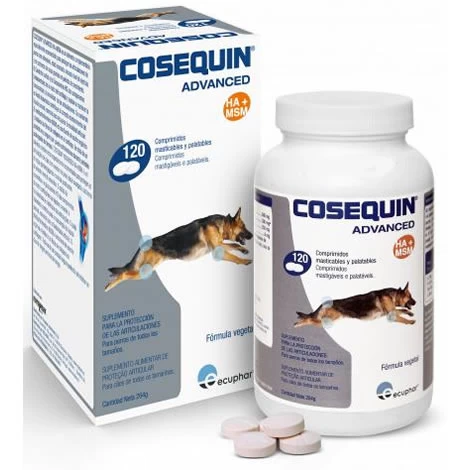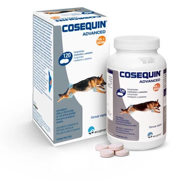 COSEQUIN® ADVANCED chewable and palatable tablets contain Glucosamine, Chondroitin sulfate, Methylsulfonylmethane (MSM), Sodium hyaluronate (HA) and Manganese (ascorbate).