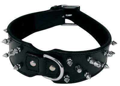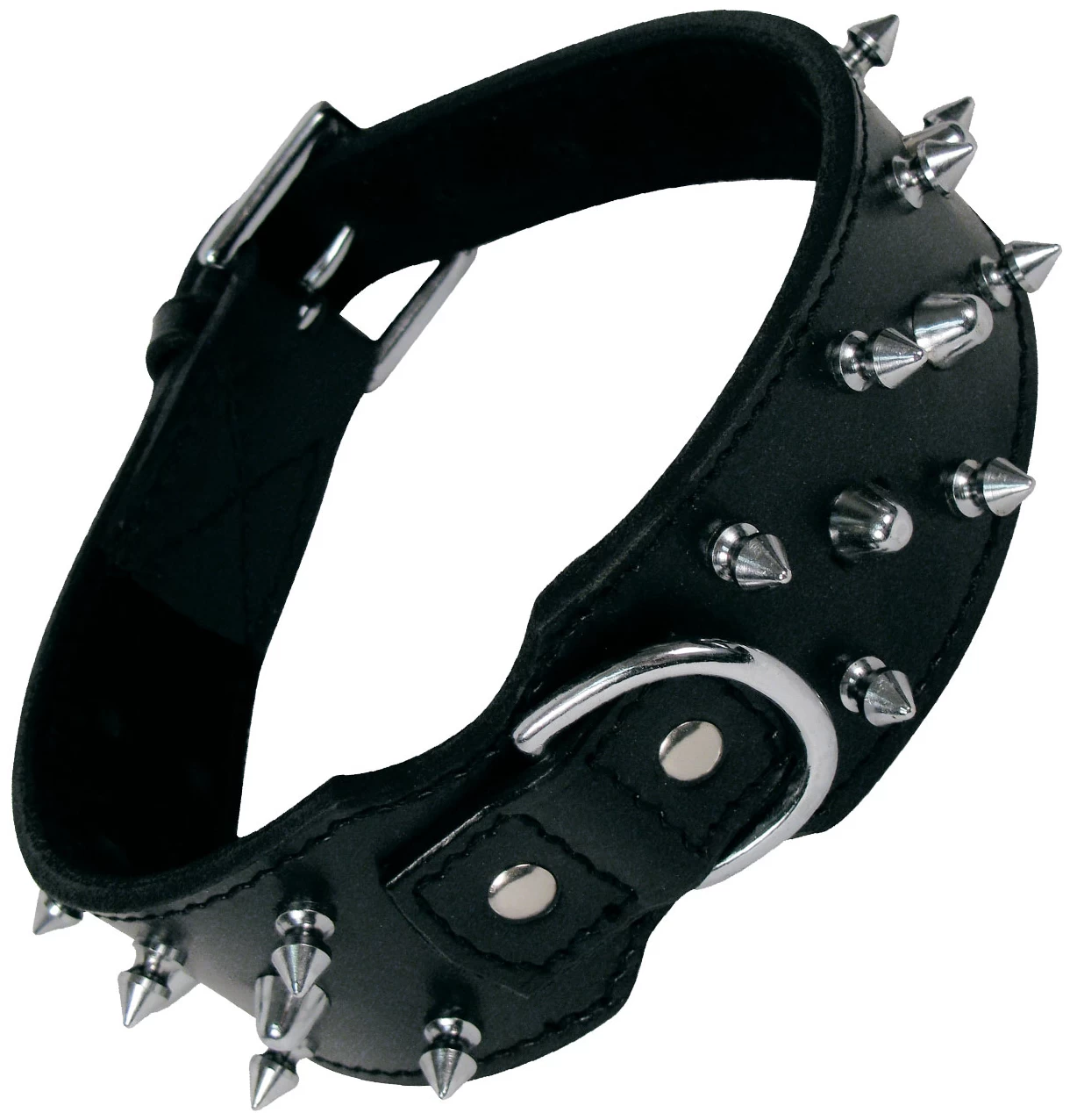 Gloria Pets Leather Collar With 3 Rows Of Spikes Black