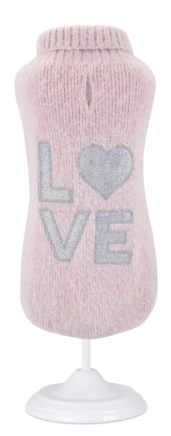 Adaptable knitted sweater. Modern and elegant design with silver and glitter decoration. With eyelet for the strap and elastic for the tail (20x14x1cm).