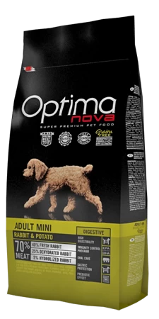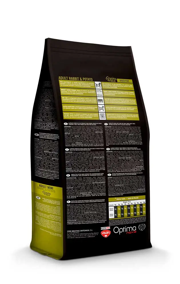 Adult Mini Digestive Rabbit & Potato is the only product on the market in this category made from fresh rabbit meat. Easy to digest, tasty and low in calories, cholesterol and fats, it also contains important minerals such as iron, magnesium and zinc. Its Omega3 helps to keep his skin healthy and his coat shiny. Its perfect for small or mini breeds. Especially for those with sensitive stomachs.
