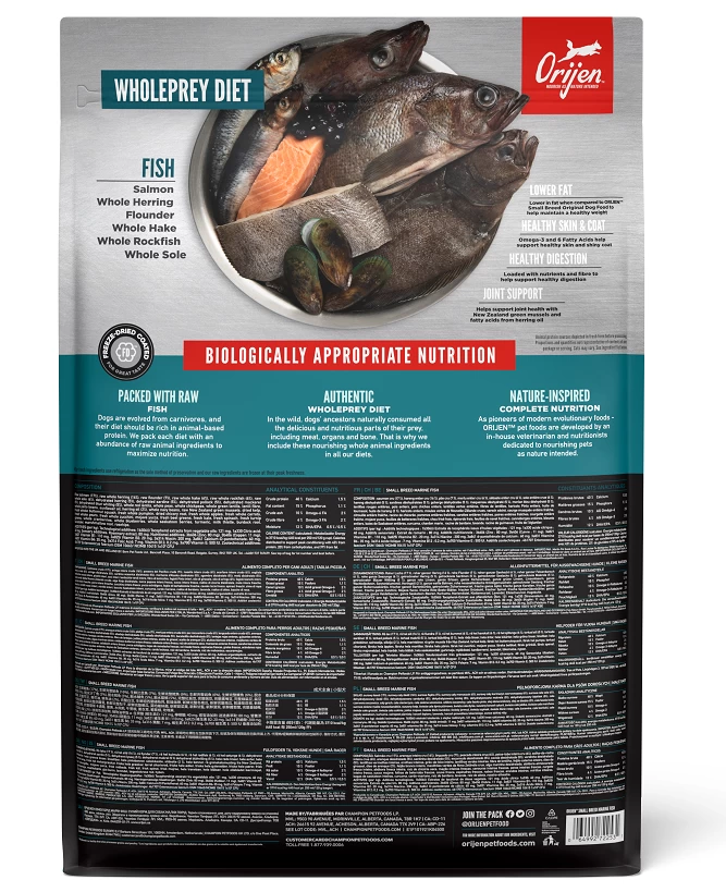 WEIGHT MANAGEMENT: New ORIJEN™ Small Breed Marine Fish is lower in fat* to help maintain a healthy weight