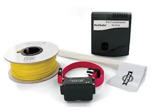With this portable zone limiter it is not necessary to bury any cable. Simply plug the transmitter into a standard wall outlet near where you want to establish the authorized area for your pet. Charge the rechargeable receiver collar in 2-3 hours. The transmitter communicates with your dogs receiver collar and helps keep it within the designated area. The system is portable, so you can take it to other places. It is possible to add an unlimited number of pets to the system with additional wireless receiver collars.