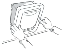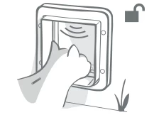 Selective entry: any animal can get out. The microchip reader is only located on the outside of the pet door.