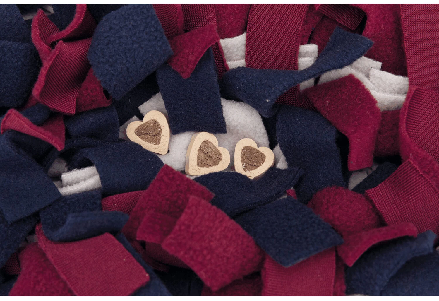 Carpet for dogs and cats, ideal as an interactive toy that allows them to get prizes by sniffing. The animal gets the prize using the snout or paws, it is available in 2 different tassel lengths, it can also be used for daily feeding, as it prevents your pet from gobbling food. It has a removable plastic tray that prevents wrinkling and allows easy cleaning or machine washing.
