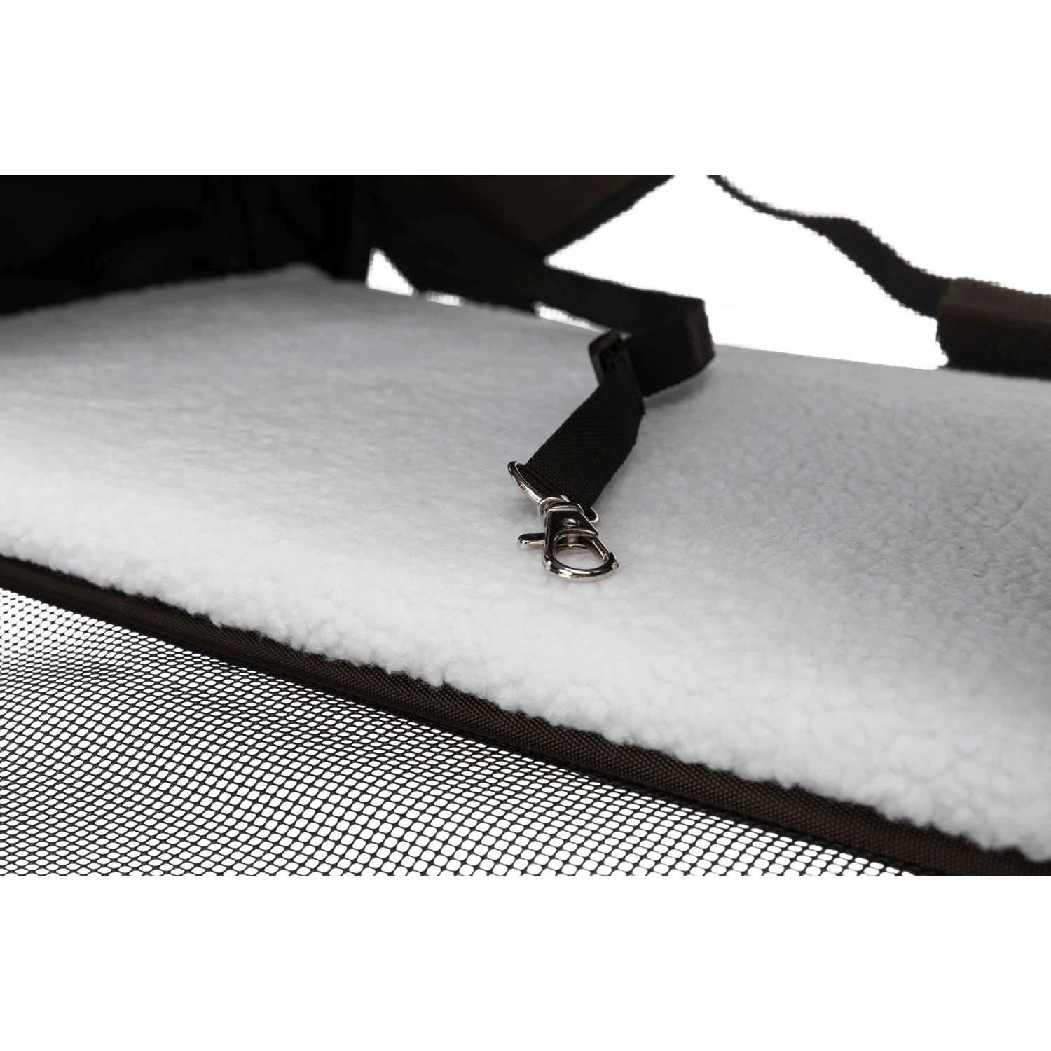 - Integrated short strap prevents the pet from jumping out