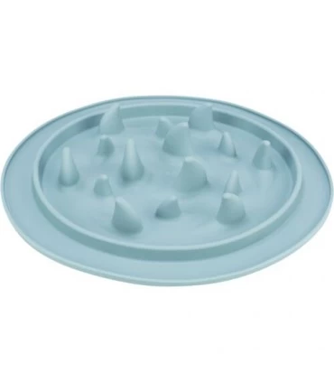 The trixie Slow Feed dog food mat is a product designed to prevent dogs from eating too fast and choking or digestive problems. The mat has an irregular surface with different heights and shapes that force the dog to search for the food with its tongue and chew more slowly. This reduces the risk of the dog swallowing air, vomiting or abdominal bloating. The mat is easy to clean and can be rolled up for storage or transport. The trixie slow feed dog food tablecloth is a practical and safe solution to improve the health and well-being of dogs that eat too fast. Features: prevents gobbling of food suitable for all types of feed soft material is gentle on mouth and gums can be filled with food and frozen for longer use non-slip TPE